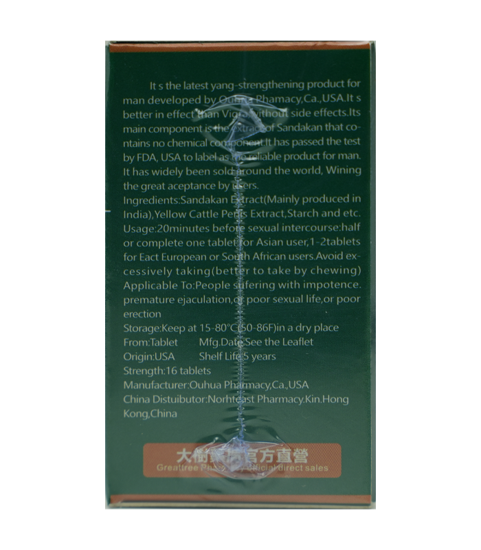 | 山打根果 | 中藥,來自於印度的一種珍貴稀少的植物,性暖具有提升男女的性荷爾蒙分泌,提升睪丸分泌活性,具有治療陽痿、脾性冷的功效。 |