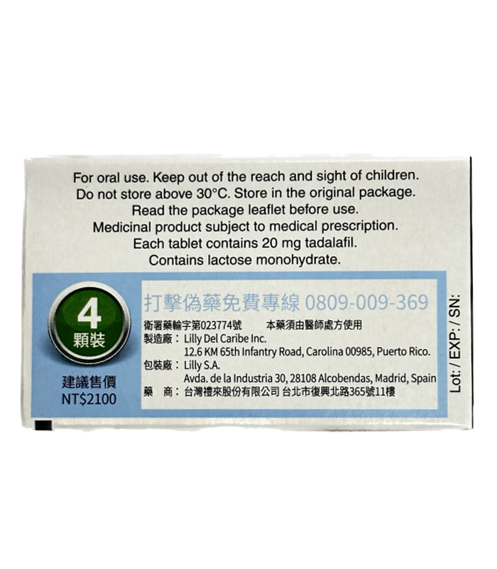 【產品名】犀利士/Cialis 20mg*4粒 他達拉非片(Tadalafil20mg)