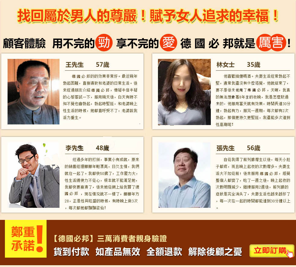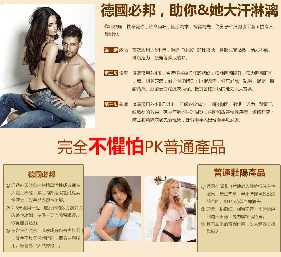 德國必邦于2013在美國上市販售,一上市就獲得超強超好效果的高度評價!經過多年年的市場開拓與臨床試驗,德國必邦中「靶向活性肽」針對男性陽痿 不舉症狀、早洩不持久、陰莖短小的男性有特效,故在2016在台灣地區成立進入台中e購網販售,請認準本網『https://grtre.com.tw』是台灣唯一正品販賣中心!
