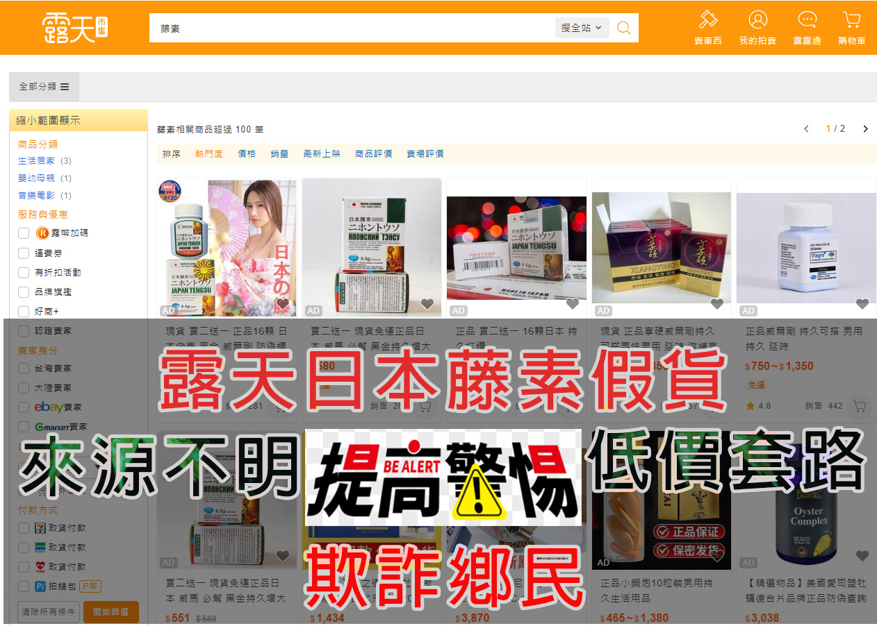 雖然露天購物是一個便利的電子商務平台,但我們還是需要謹慎。對於低價和途徑不明的商品要提高警惕,避免落入購物陷阱。只有這樣,才能保護自己的利益,我們需要提高警惕,並謹慎選擇商品和購買途徑,消費者才能真正享受到愉快的購物體驗。購買四代日本藤素請認準台中e購網: