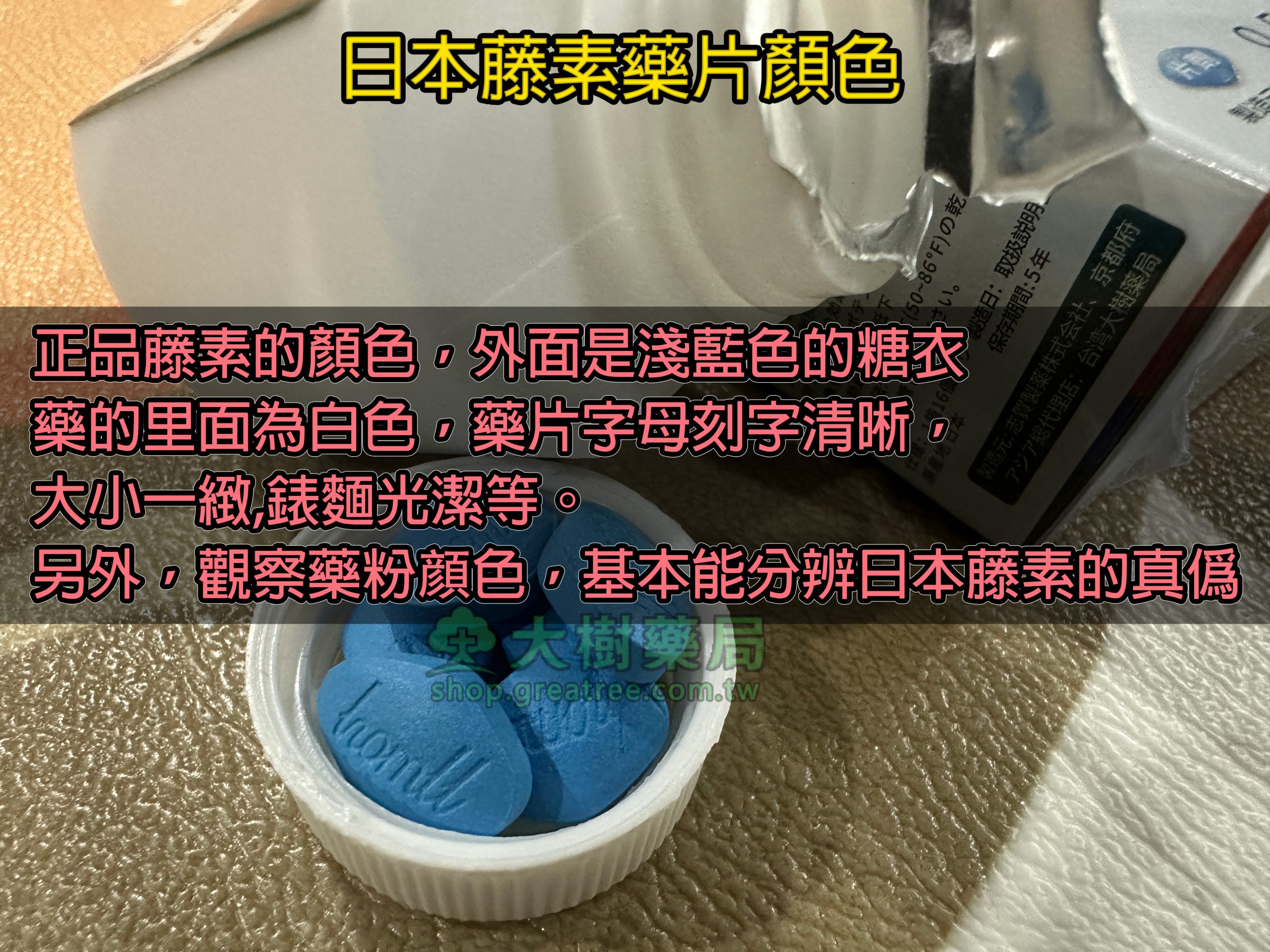 日本藤素正品藥片顏色與外觀特徵